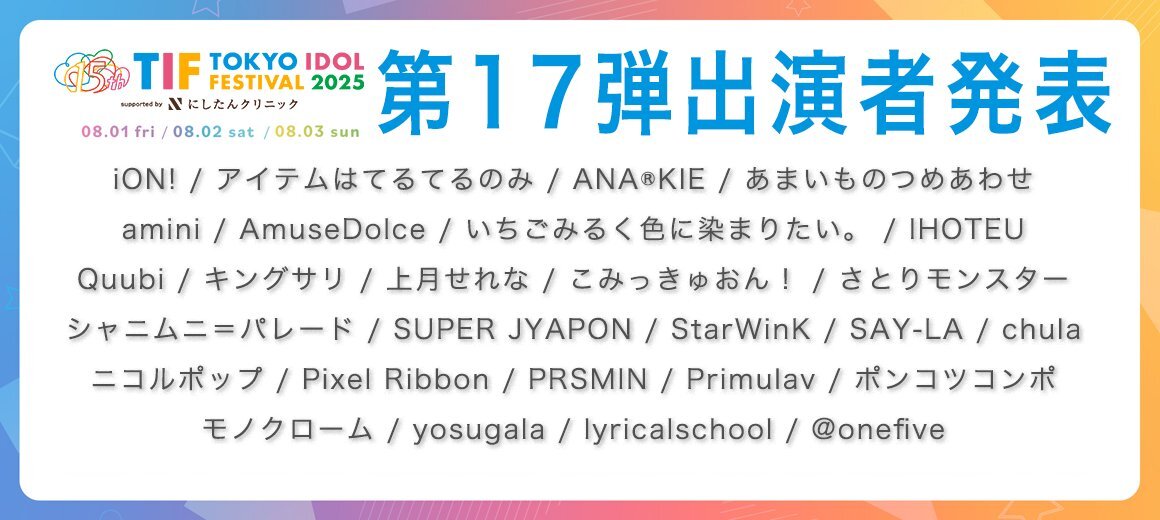 【TIF2025出演決定!!】TOKYO IDOL FESTIVAL 2025 supported by にしたんクリニック